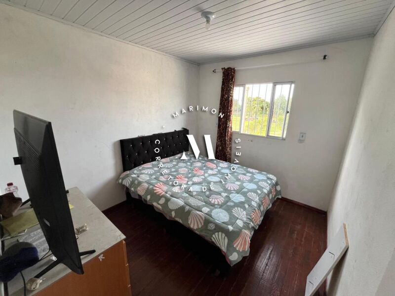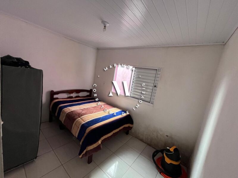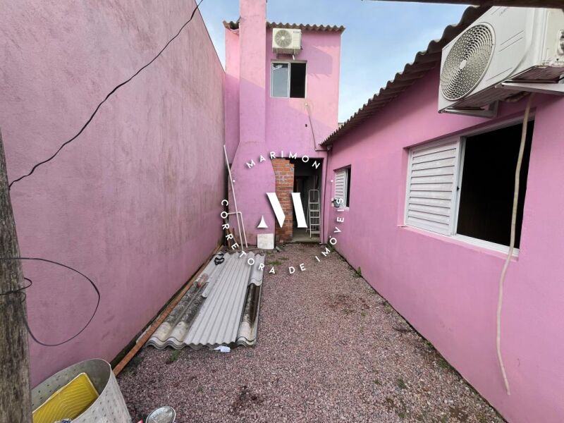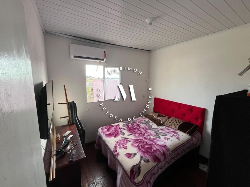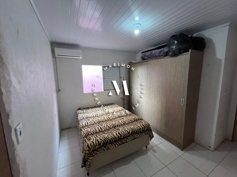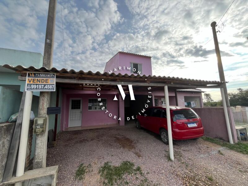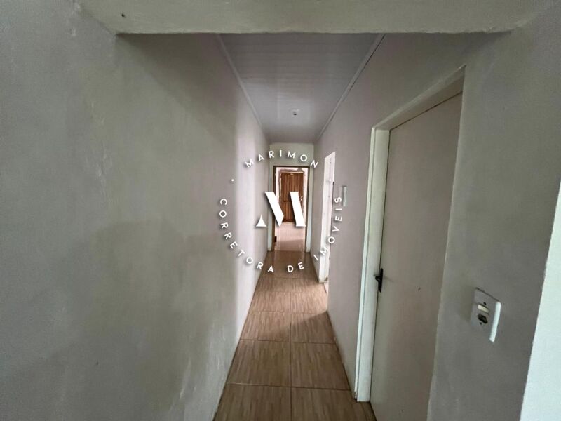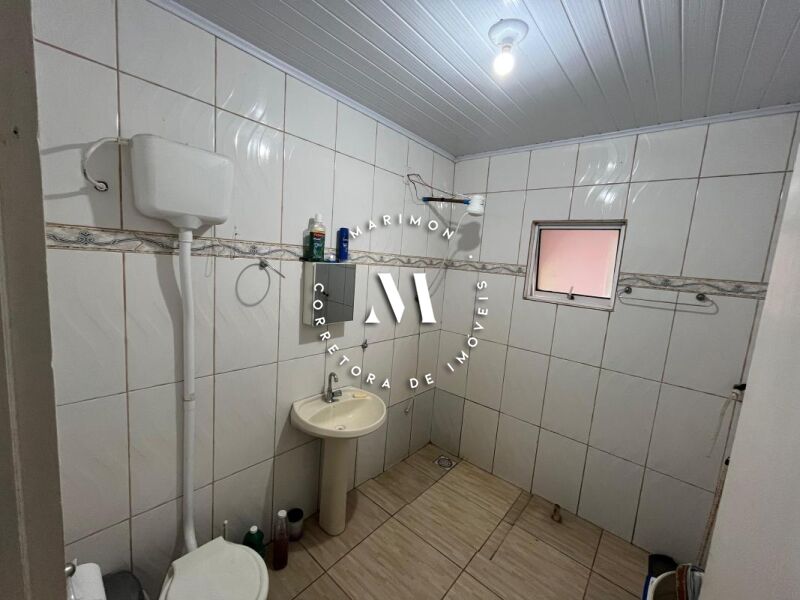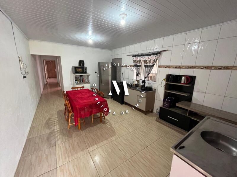 Casa de alvenaria com 123 m² de área construída**, composta por 4 dormitórios, 2 banheiros, sala e cozinha integradas, área com churrasqueira e garagem. Terreno medindo 7 x 30 metros.