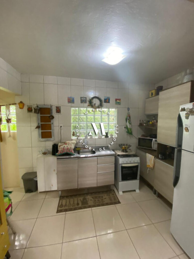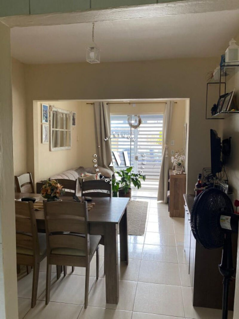 Casa de alvenaria com laje, 01 hall de entrada, 01 sala de estar, 01 sala de jantar, 01 cozinha, 02 dormitórios, 01 banheiro, 01 área gourmet com lareira, 01 vaga para carro