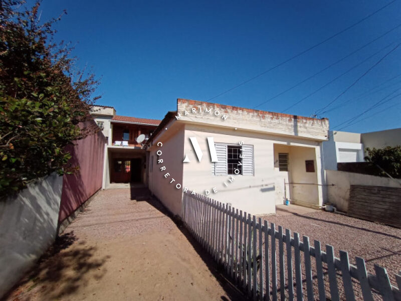 Casa de alvenaria com laje: (frente) 02 dormitórios, sala de estar, cozinha, banheiro social. (Fundos) : 01 dormitório, sala e cozinha conjugadas e banheiro social, garagem fechada ampla com cozinha e churrasqueira. (01 piso) Chalé : 02 dormitórios, sala e cozinha conjugadas, banheiro social com box, varanda ampla, área de serviço. Pátio amplo nos fundos, todo fechado e murado. Terreno: 8,50m x 54,29m