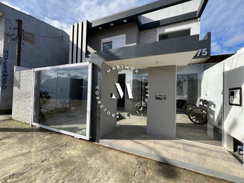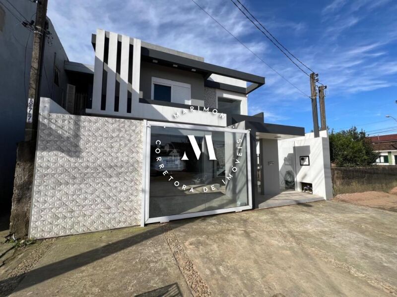 Sobrado em alvenaria: Térreo: Hall de estrada, 01 dormitório, banheiro social com box, cozinha ampla, área gourmet coberta nos fundos com churrasqueira e lavanderia, Garagem. 1° Piso: sala de estar com lareira e sacada, 02 dormitórios (sendo uma suíte ampla com sacada para frente do imóvel) Terreno: 8,55m x 19,00m. Excelente posição solar