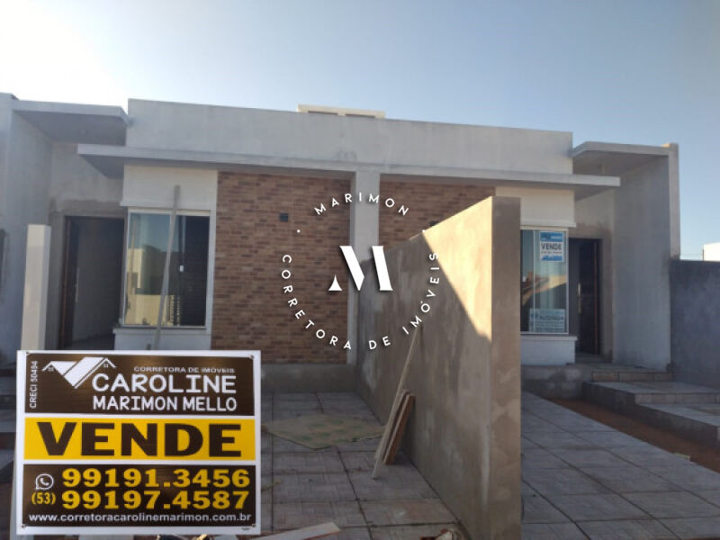 Casa de alvenaria laje: 01 suíte, 02 dormitórios, sala de estar com lareira e cozinha com churrasqueira num conceito amplo, banheiro social. Fundos: área de serviço e pátio.