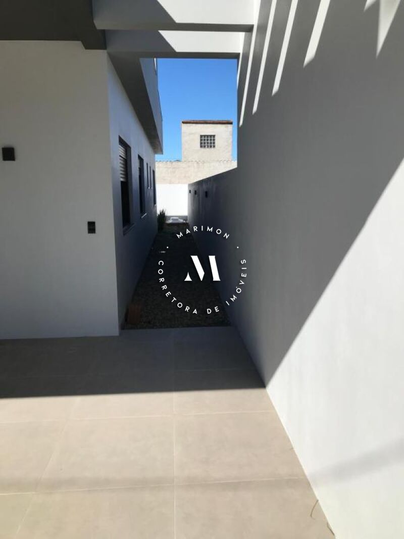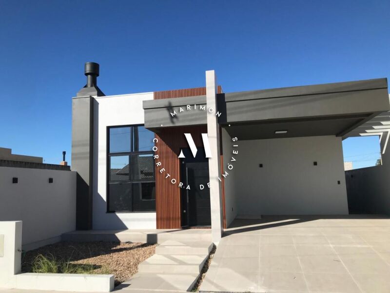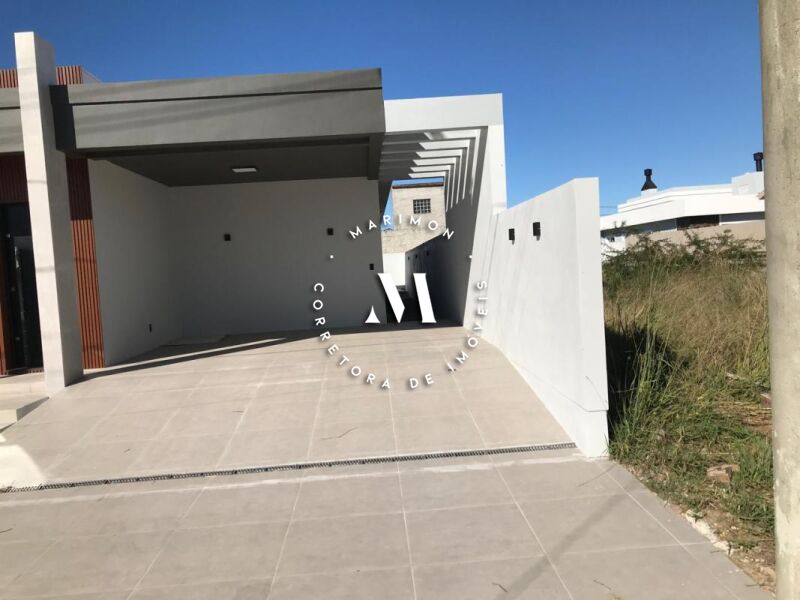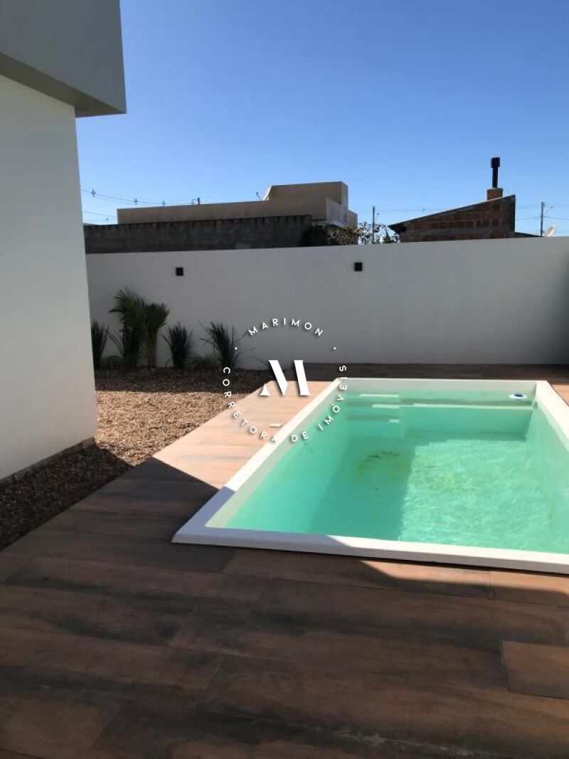 Casa de alvenaria com 118m² de área construída com estrutura para segundo piso, sendo 03 dormitórios, sendo 01 suíte, sala de estar e jantar, cozinha com churrasqueira, banheiro, área de serviço, garagem para 02 carros e piscina. 10x25